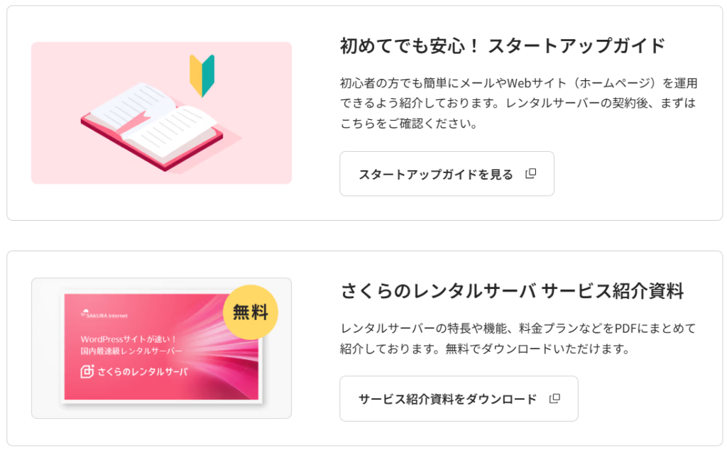 初心者向けスタートアップガイドやサービス紹介資料などの資料を用意してあり、使いやすい印象が感じられます。